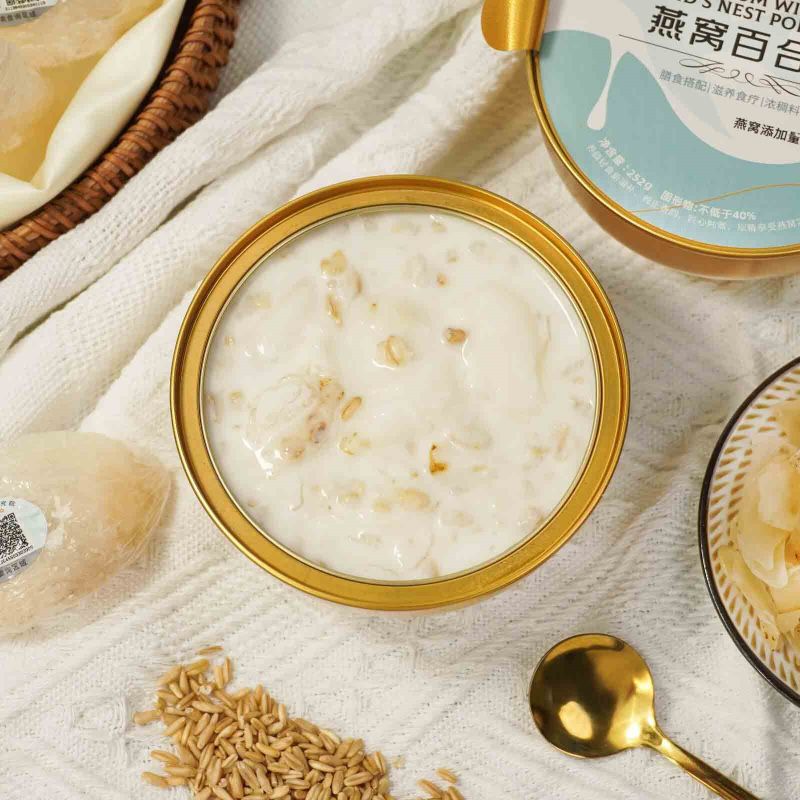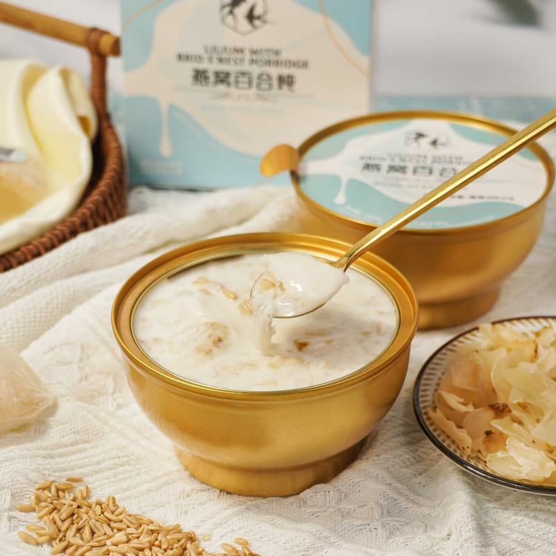 Presente Lilium con gachas de avena Nido de Pájaro como una exquisita caja de regalo para compartir con amigos y familiares, lo que la convierte en un regalo perfecto para diversas ocasiones. Ya sea un cumpleaños, un día festivo o una celebración, esta papilla de nido de pájaro empaquetada en una caja bellamente diseñada agrega un toque de sofisticación a los momentos festivos, transmitiendo cariño y bendiciones sinceras.